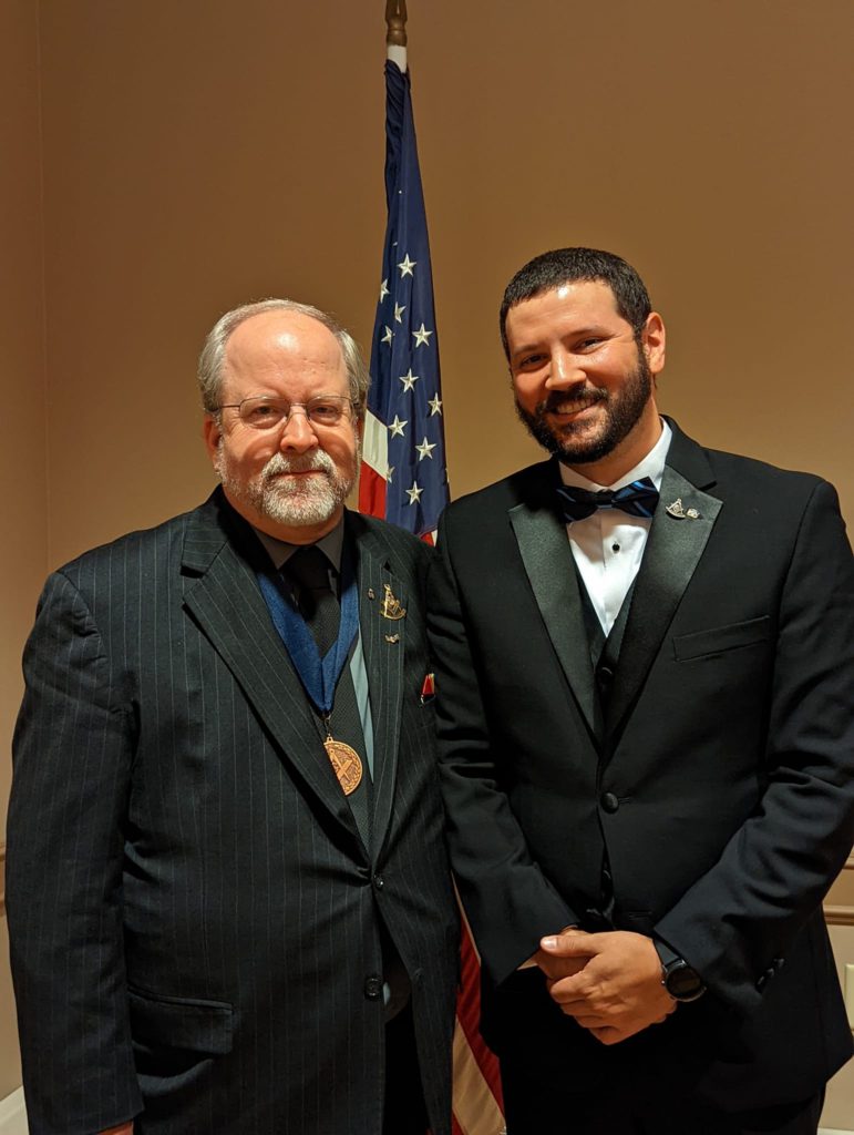 WB Roger Manley (left) was awarded the Individual Masonic Achievement Award by the Grand Lodge of Nebraska Awards Committee on WB Eric BenSalah’s (right) recommendation letter. Roger was presented the award at Mercer’s Ladies at the Table event on June 28, 2022.