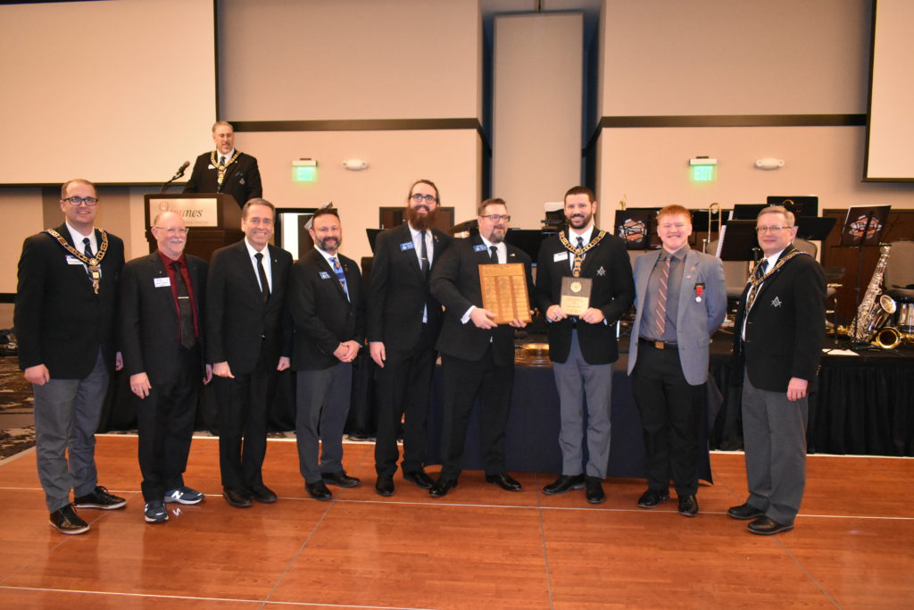 At the 2023 Annual Communication of the Grand Lodge of Nebraska, John J. Mercer Lodge No. 290 won their first ever Gold Pan Award. The Gold Pan Award is awarded each year by the Grand Lodge of Nebraska to that Nebraska Lodge which, in the opinion of the Grand Lodge Awards Committee, has contributed extraordinary service to or advancement of Freemasonry in Nebraska, or has shown the greatest improvement or innovation in its activities. Mercer won with their innovative “Blade of Mercer” raffle, commissioned by Bro. Jesse Gabriel.