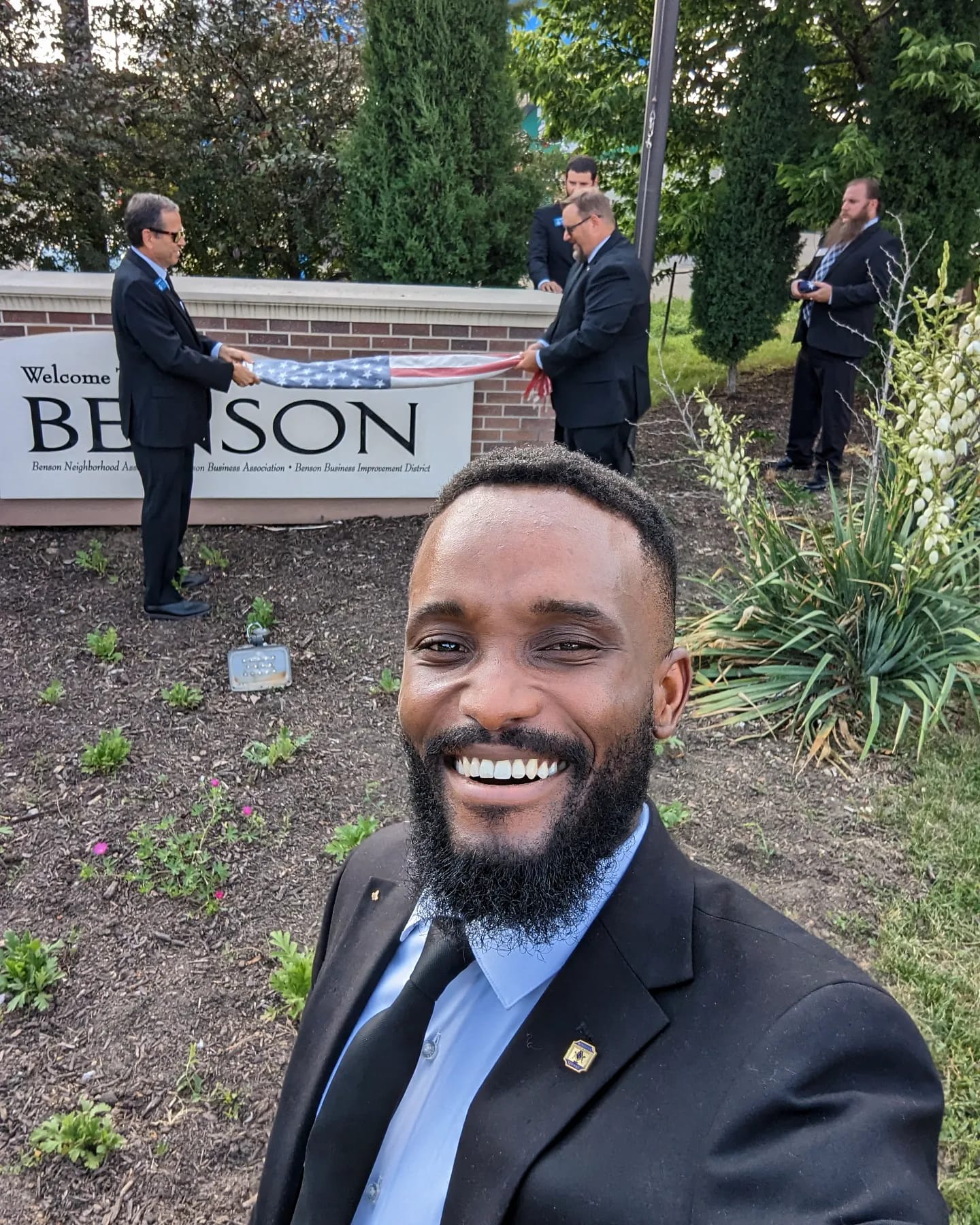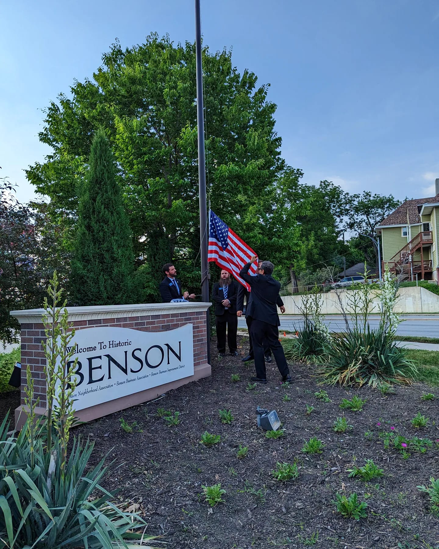 Mercer helped replace the flag at the entrance of the Creative District of Benson this evening. The Benson Improvement District has been working with Mercer to keep this tradition going the last two years.